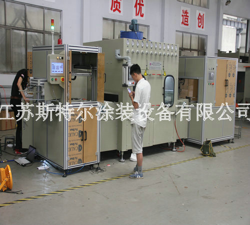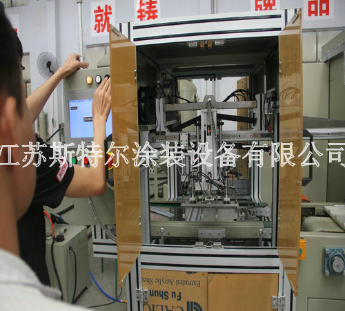 祝賀我公司為OPPO新款手機外殼定制的全自動玻璃水砂自動噴砂機交付客戶!!全自動玻璃水砂自動噴砂機由自動上料機、自動噴砂機和自動下料機三大部分組成:首先由自動上料機將附有兩組Tray盤Port可自動交換,需人工放Tray盤至LD Port, Tray盤定位后,移栽Arm開始取片,玻璃整列,再由移栽Arm直接將玻璃放置在載具Stg上,送入噴砂設備,當一個Tray port 取完后,會報警提醒人員裝載新的Tray盤,當空Tray盤滿杯后設備會自動報警通知人員取走空Tray盤,以此循環動作.然后到全自動玻璃水砂自動噴砂機,由人工自行調配一定的水砂比例后設備自動進行混合攪拌,自動上料機構抓取玻璃放到輸送同步帶上,進入噴砂機腔體進行噴砂,噴砂作業結束后,進入水刀處進行噴淋,噴淋結束后由風刀進行吹干。吹干后移動至下料機移栽位置,由移栽將玻璃抓取至下料機FORK上,以此循環。噴砂、清洗、吹干區域有擋邊防止工件位移。后自動下料機將附有兩組CST Port可自動交換,需人工放空的CST至UnLD Port, CST翻轉90°后,氣缸機械定位,由移栽arm從治具上取玻璃放置Fork上,送入CST, CST Port內的基板利用Fork方式由高層開始放片,Fork 真空感知Sensor/玻璃光纖sensor OFF后,Fork自動退回到等待位置,以此循環。當CST裝滿后,設備會報警提示人員將CST取走并裝入空的CST。