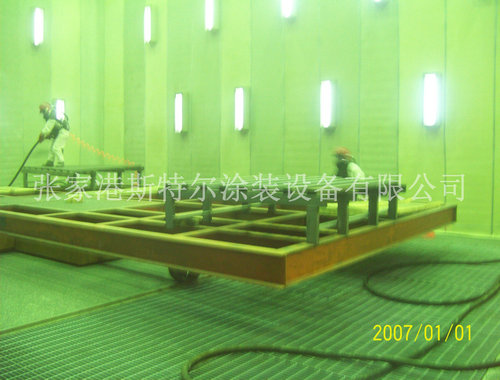 10、噴砂(丸)房室體采用聚苯乙烯發泡塑料夾心彩板房組成,具有消音功能,美觀、堅固、密閉。