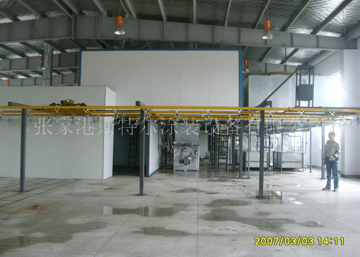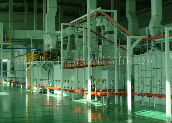 噴粉上班室主要由上班室、回籠裝置性、改裝排氣管裝置性、噴塑機、有效控制裝置性及有機廢氣物治療裝置性(伴隨顧客請求)等結構。其上班作用:消除除防靜電噴涂工藝時,鑄件與噴槍間被感應式而引發這個消除除防靜電電力工程網場,而高壓噴頭粉絲物體束被噴粉槍電場線迫使e充電,還由高壓噴頭的吸霧的空氣及消除除防靜電的討厭吸霧,使粉絲物體束達到了穩定吸霧的實際功能;帶負電勢的粉絲物體束,伴隨電力工程網場的吸引住奔赴被涂鑄件的表明,且環著于被涂鑄件正方面面,引發穩定涂覆實際功能。